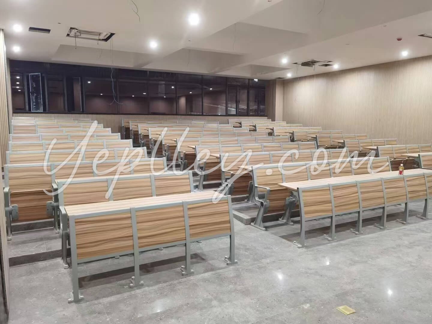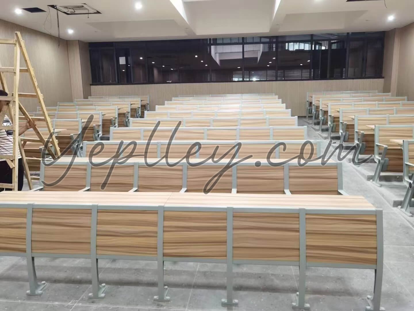 This project was completed for one of Oman’s University in November 2020. The university required a set of modern, durable, and space-efficient classroom desks for sale and chairs for a newly built stepped conference hall. A total of 137 fixed seats were installed with a custom layout tailored to the room’s architectural design.