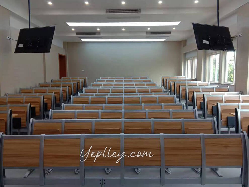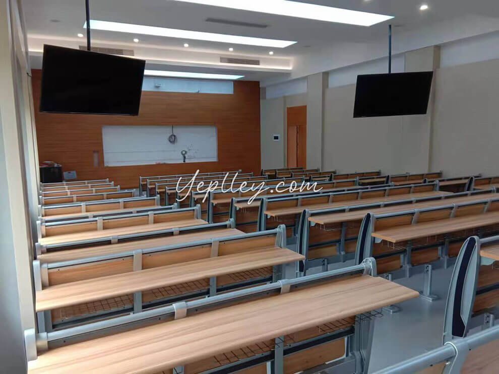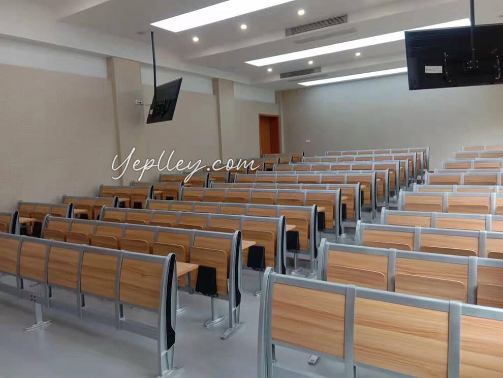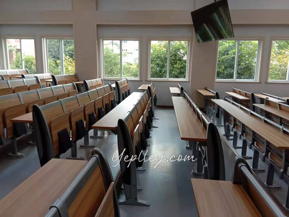 We first suggested our popular old model, but it lacked a modern look. Then we introduced our patented lecture hall chairs for school with aluminum legs, which the client liked but found slightly over budget. To meet their budget, we adjusted the design by using fixed writing boards, reducing costs by about 6 USD per seat.